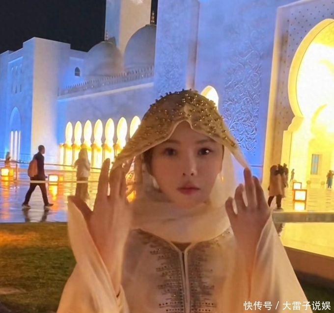 伊能静持续更新在迪拜的旅行vlog,9号晚上她们全家到了清真寺,一开场差点没认出来她,换上当地特色服装,伊能静整个人散发着优雅温柔的气息,加上后面的灯光衬托,看起来年轻了好多。