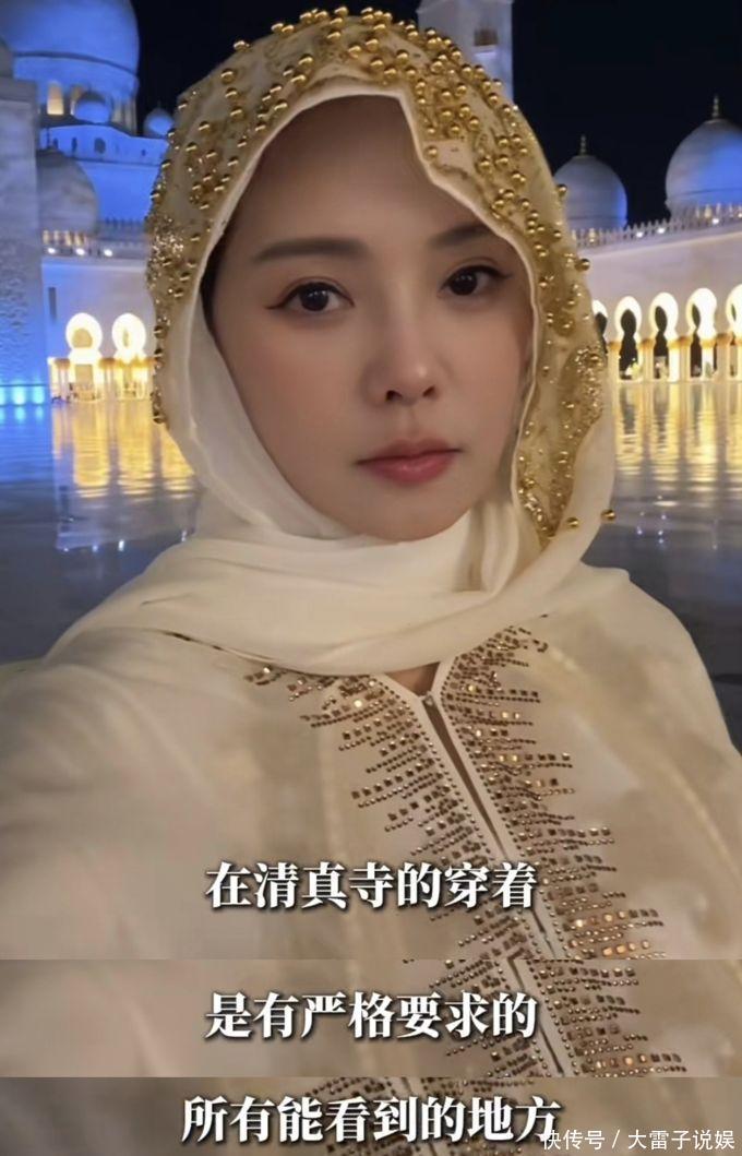 伊能静参观清真寺,包着头巾不敢大声说话,秦昊把她拍得像130斤